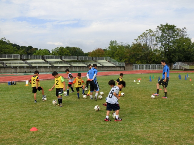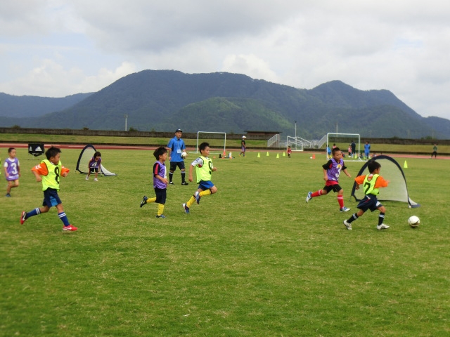 越前市を中心に小学1年~4年初心者対象に募集しての開催でしたが人数の確保がままならず、尚且つ前日から朝方までの雨で開催が危ぶまれての状況があり欠席者が15名でたのが残念でした。参加した子供達はサッカーを堪能し、最後に的当てゲームで和んだ笑顔で楽しんでくれたのがよかったです。