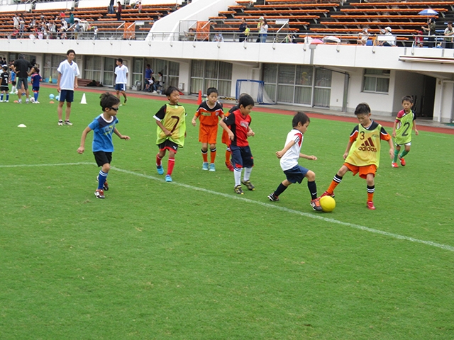 朝方より小雨が降る中でしたが、無事に開催することが出来ました。静岡県内のU-7.8子どもたちを対象に募集しました。普段、使用する事の出来ない清水エスパルスホームグラウンド「IAIスタジアム日本平」で出来るという事で、目を輝かせて生き生きと体を動かしている子どもたちを見ることが出来てよかったです。このフェスティバルをきっかけに一人でも多くのサッカーファミリーが増えてくれればと思います。