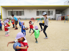 「巡回指導」とは幼稚園や保育園、小学校等の場に、こちらから巡回して、サッカーを楽しむ時間を提供するものです。その幼稚園や保育園、小学校に所属する子ども達に、プログラムを提供します。自治体等を通した呼び掛けに対し、賛同していただいているところに提供しています。