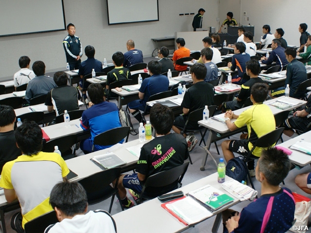都道府県より推薦を受けて集まった指導者たちは、キッズ年代の発育発達、コミュニケーションスキルなどの講義に加え、グループ毎にライセンスを取りに来る大人を想定した指導実践を行ないました。