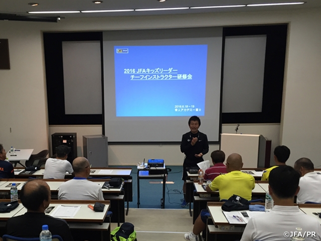 6月18日(土)から19日(日)の2日間にわたり、「キッズリーダーチーフインストラクター研修会」を静岡県の帝人アカデミー富士で開催しました。「キッズリーダーチーフインストラクター」は都道府県サッカー協会(FA)に各一名配属されています。キッズリーダーのインストラクターを組織化し、キッズリーダー養成講習会を統括する役割を担っています。ニ年を任期とし、その他のキッズ関係の取組みをリードするとともに、他種別との連携にも尽力いただいています。