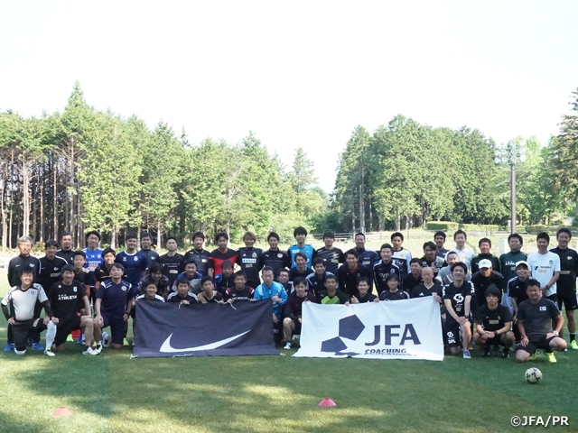 富士山を望める好天に恵まれ、帝人アカデミー富士の閑静で素晴らしい環境のもと、全国から47名の方々に講習会へ参加いただきました。実技、講義、指導実践と、心も頭も身体もハードワークしていただいた2泊3日の講習会でした。キッズリーダーインストラクターの重要なタスクは、それぞれのサッカー協会内で、多くの大人の方々にキッズリーダー養成講習会に参加していただき、実技とレクチャーを通じて、子どもたちにとって「望ましい環境」を整えていただける「大人」の輪を広げていくことです。まずは、自らがカジュアルに「子どもたちと共に身体を動かし、楽しむこと」が、ベースとなります。キッズリーダーインストラクターとして、日本の将来を見据えた大切なミッションを担っています。子どもたちのみならず、大人のみなさんの笑顔が溢れるような取り組みを共に継続していきましょう。