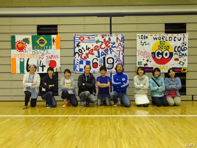 一緒のテーブルになった子どもたちとアイディアを出しながらのフラッグ作り、とても楽しく参加させていただきました。保育士として幼稚園に勤めているのですが、園児たちにも、このような楽しく学べる時間を持たせてあげたいと思いました。またぜひこのようなイベントに参加したいです。日本代表のみなさん、ワールドカップ優勝を目指してがんばってください。