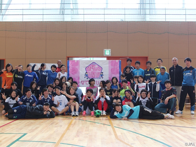 『JFAなでしこひろば』は、女性が、子どもから大人まで日常生活の中で定期的にサッカーやフットサルを気軽に「はじめて」「たのしみ」「つづける」ことのできる<場所>や<時間>のことです。運営者も募集しています。