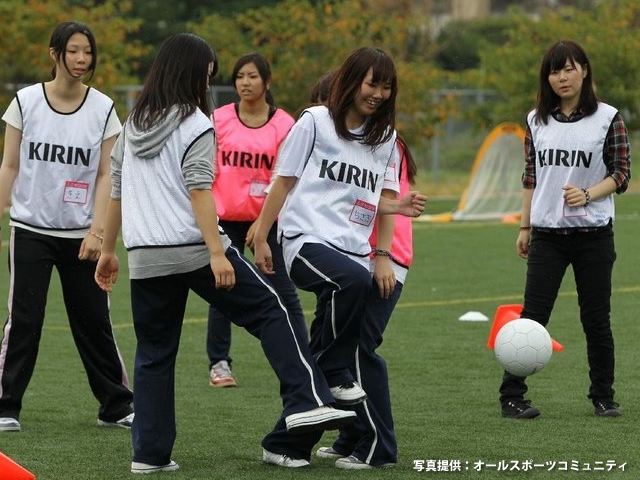 JFA・キリン レディース/ガールズサッカーフェスティバルは、みんなで仲良く協力しながら、ミニゲーム(少人数の試合)やシュート、パス、ドリブル競争などのプログラムを通して、一緒に汗を流す、とっても楽しい女性限定のプログラムです。