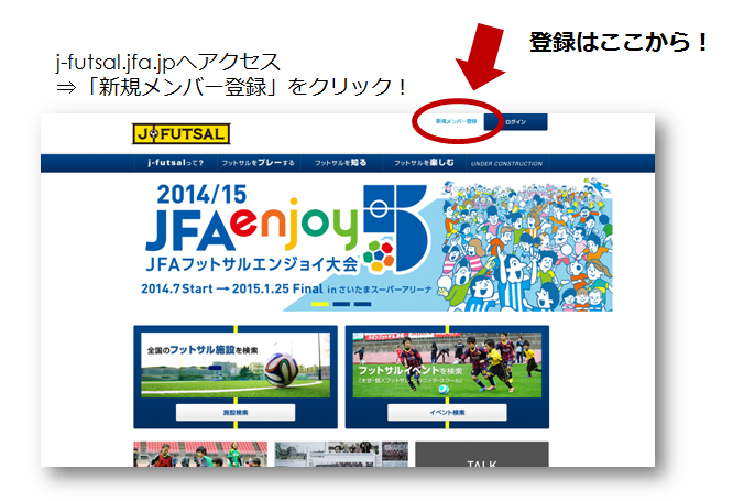 JFAの新しいフットサルエンジョイプレーヤー登録サイト「j-futsal」では、どなたでも無料で簡単にメンバー登録することができます。登録して、ぜひJFAのメンバーとしてフットサルを楽しんでください。