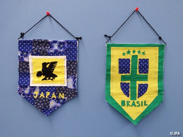 企画内容:サッカーの試合前にチームが交換するペナント。布を切り貼りしてオリジナルの「マイペナント」が制作できます。(小中学生の方1名につき1セットのペナントベースキットを配付。)会場にはワールドカップブラジル大会に出場した全32協会のペナントも展示。制作に必要な用具を揃えたスペースをご用意します。