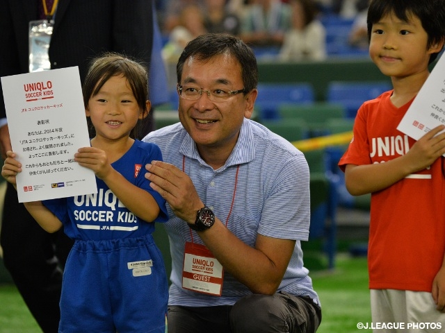 ユニクロは世界のスポーツ選手をスポンサードして応援しています。本田選手にはテレビCMに出ていただき、テニスでは錦織選手と車いすの国枝選手、ゴルフのアダム・スコット選手などです。これらの選手に共通していることがひとつあります。それは、皆さんのように小さい時から明確に目標を持って日々努力しているということです。大きな夢を持ち日々努力すれば、人生で大きく成功することが出来ると思います。最後に、このような素晴らしいイベントを主催していただいた、日本サッカー協会、東京都サッカー協会、そしてボランティアの方々、参加していただいたご家族の皆さん、本当にありがとうございました。