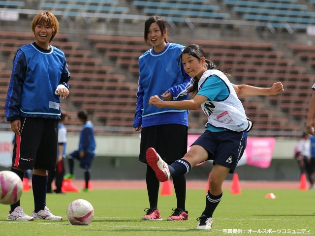 皆さんと一緒に、短い時間でしたがボールを蹴ることができて、私もすごく楽しかったです。サッカーがうまくなる秘訣は、サッカーが楽しいなと思うこと。サッカーが大好きだと思うと、サッカーが上達すると思います。サッカーのいいところは、今日のように点が入ったりした時に、仲間と喜びを分かち合えることだと思っています。これからも、今日の気持ちを忘れずに、またこのピッチで代表選手やなでしこリーグの選手として戻ってこられるように、練習をたくさんして頑張ってください。今日は、どうもありがとうございました。