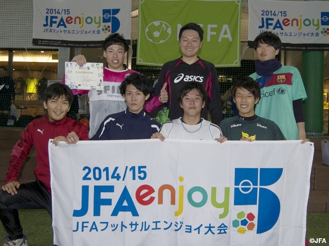 全国各地の民間フットサル施設などで熱戦が繰り広げられている「2014/2015 JFAエンジョイ5」。11月24日(日)、東京都江東区の『MIFA Football Park』でエンジョイカテゴリーを開催し、JFAフットサル総合サイト「j-futsal」から登録・エントリーした24チームによる試合を行いました。エンジョイカテゴリーでは、32施設で開催しているファーストステージ各会場の優勝チームをファイナルステージに招待します。男女や年齢の制限がなく、エンジョイ志向のチームを中心に参加しやすいカテゴリーとなっています。