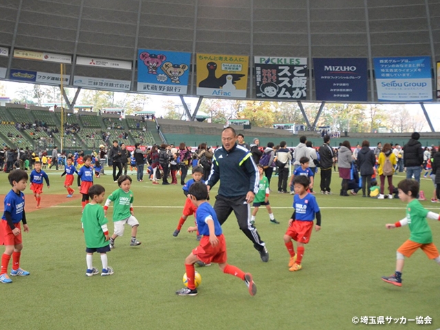 スペシャルゲストとして、元サッカー日本代表の秋田豊さんが子どもたちと一緒に試合に参加しました。西武ドームを本拠地とする埼玉西武ライオンズのレオ・ライナ、埼玉県のJリーグチーム、浦和レッズのシャーレ、大宮アルディージャのアルディも子どもたちとの写真撮影に応じ、ピッチで声援を送りました。
