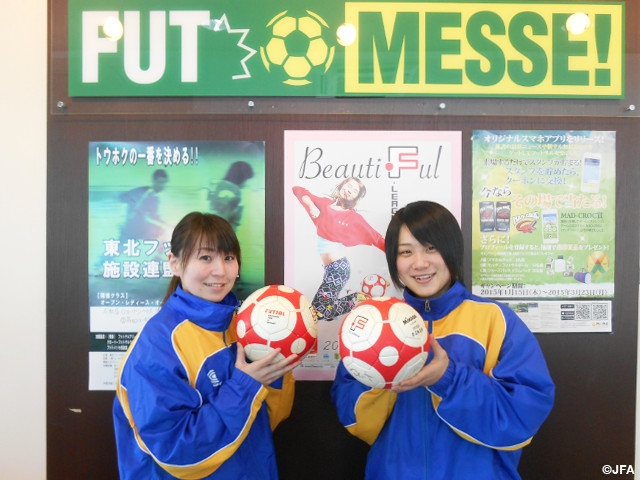 j-futsalでは、そのフットサル場を運営するスタッフにインタビューし、エンジョイプレーヤーの皆さんの拠点であるフットサル場をレポートします。第11回は、宮城県のFUT MESSE名取店にて受付・フロント業務を担当している 茂庭汐里さん・作並いずみさんです。