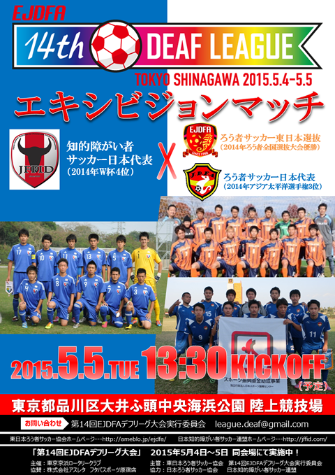 エキシビジョンマッチおよびろう者代表合宿の詳細につきましては、東日本ろう者サッカー協会、日本ろう者サッカー協会ホームページをご確認ください。