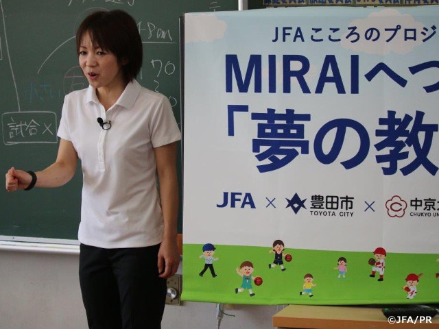 「REPORT」は、JFAこころのプロジェクト初の産学官連携となる「MIRAIへつなぐ『夢の教室』in豊田」を取材。愛知県豊田市で開催した記者会見とともに、なでしこリーグで活躍した法師人美佳(ほうしとみか)さんが豊田市立元城小学校で行った感動の授業をレポートします。