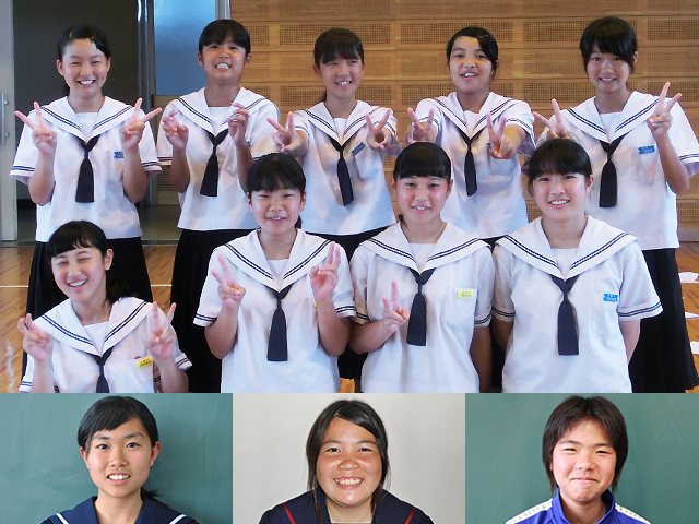 宮崎県の中学校の中で女子選手が一番多いサッカー部です。試合のときは、他の中学校との合同チームで臨み、最近は勝つことも多くなりました。体力がもたないこともありましたが、走り込みなどの練習をして、男子にもたまに勝てる力もつきました。私たちは、試合で1点取るごとにめちゃくちゃ喜ぶチームです。今回のフェスティバルでは、楽しくサッカーがしたいです!!