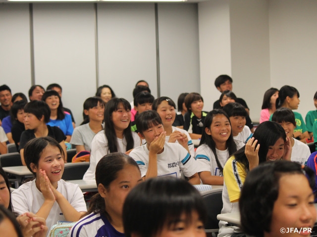 夜のレクチャーにはINAC神戸レオネッサの川澄奈穂美選手と田中明日菜選手がサプライズで登場し、選手たちからの様々な質問に自身の経験を踏まえて答えてくれました。