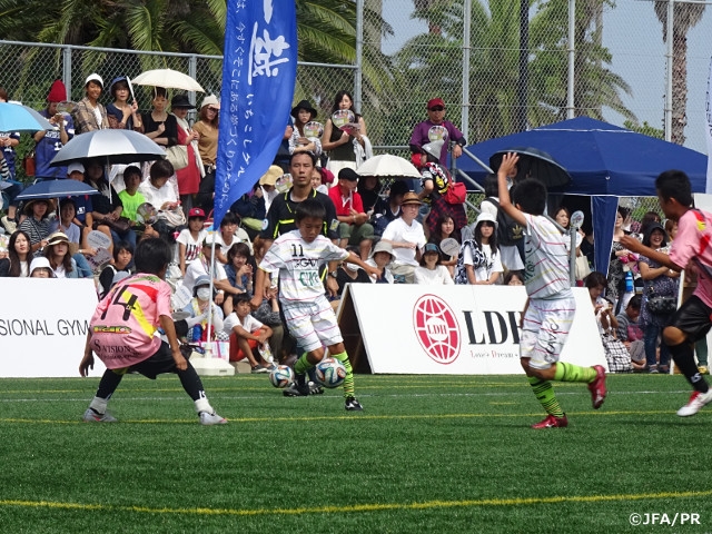 長崎県で行われた九州大会を皮切りに、全国9地域10会場での地域大会が行われ、勝利した10チームが、9月23日に愛媛県今治市の桜井海浜ふれあい広場サッカー場で行われた決勝大会へ駒を進めました。この日は、開催地の今治市から菅良二市長、岡田武史大会アドバイザー(元日本代表監督、現FC今治オーナー)、大会を応援している株式会社LDH代表取締役社長 EXILE HIROさん、所属アーティストのCrystal Kayさん、劇団EXILEの小野塚勇人さんも会場に駆けつけ、子どもたちに大きな声援を送りました。