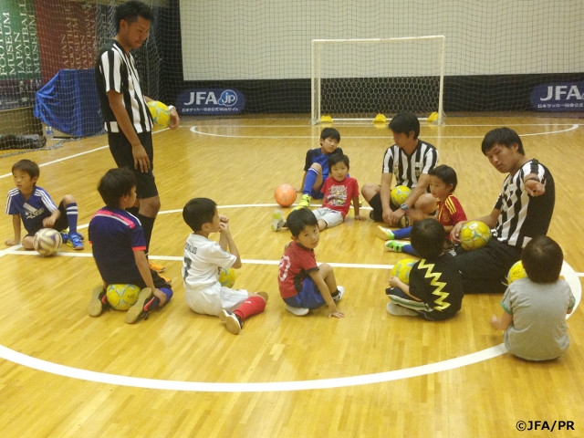 「めざせファンタジスタ!検定会」では、多くの子供たちがコーチのレクチャーを熱心に聞きステージクリアを目指していました。