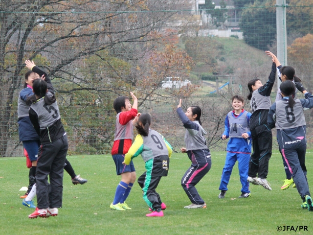 私たちはこの2日間よい経験をしました。女子だけでのフェスティバルはあるけれど、合宿はほとんどないので、合宿に行けると聞いたときは、とても嬉しかったです。さらに、普段は男子と一緒に活動しているので、女子だけで活動する今回のフェスティバルがとても楽しみでした。そして、合宿ではよりチームの仲が深まり、個人の技術も上達しました。それに、他の地域の選手たちとも仲良くなることができました。サッカーの事だけでなく、人としての常識も学ぶことができました。これからも、このフェスティバルで学んだいろいろなことを生かして、感謝を忘れずに頑張っていきます。