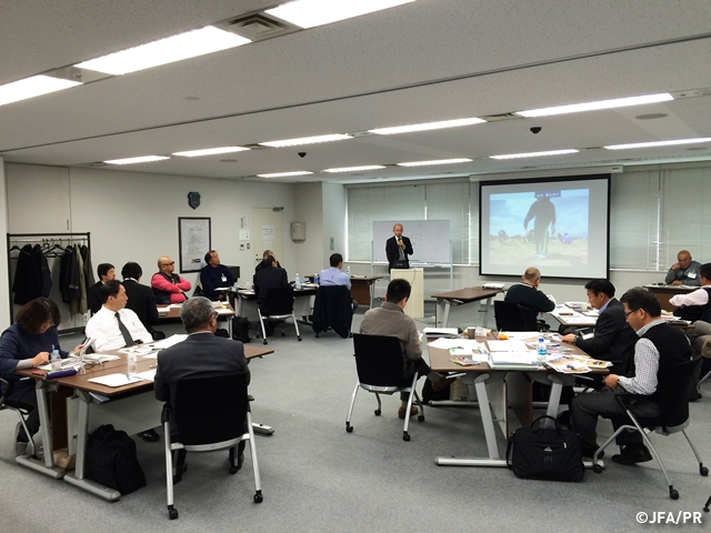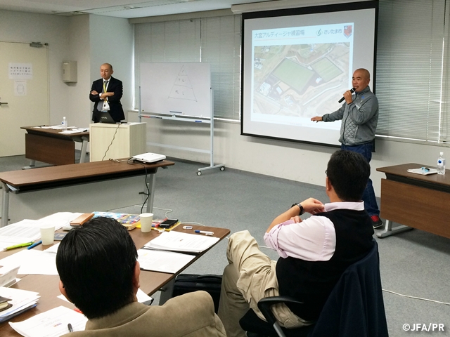 「ファイナンス・アカウンティング」では、FA(Football Association)における会計の基礎、および事業戦略に基づき資源配分する手法や考え方のレクチャーを実施。「施設」では、都道府県における登録者数とフィールド面数の割合を考えながら、状況に適した施設の最適な整備の方法について、「事業/財政計画」では、JFAの中期計画をサンプルに挙げながら、都道府県協会の事業計画書に求められる項目や考慮すべき要素について講義を行いました。
