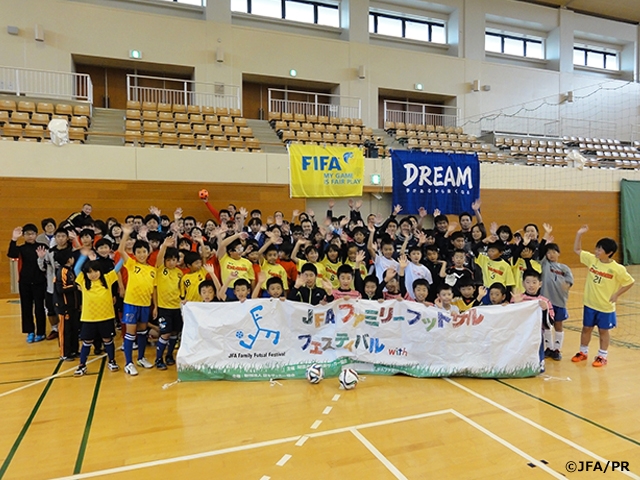 JFAファミリーフットサルフェスティバルは、誰でも気軽に楽しむことが出来るスポーツ、フットサルを通じて、家族のコミュニケーションを深め、地域コミュニティの活性化に役立ててもらおうと、2003年度から都道府県サッカー協会が主催し、全国各地で年間約2万人が参加して開催しているイベントです。