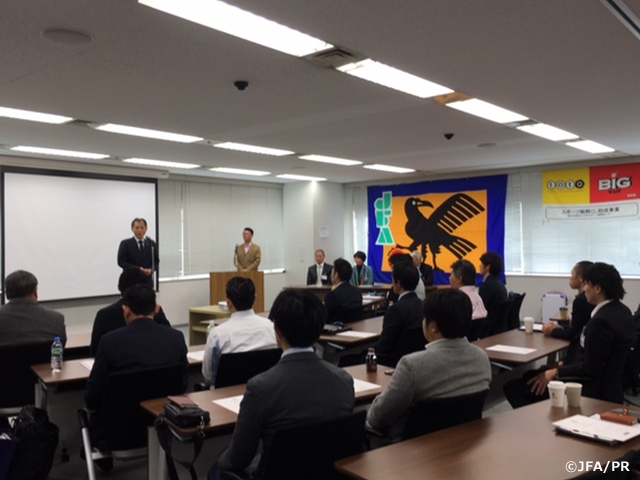 翌日は修了式を行い、受講生全24名が全カリキュラムを修了しました。修了証を授与した原博実JFA専務理事からは、「みなさんが地元に戻ってそれぞれの立場で、良いクラブを運営し充実したクラブ環境が推進されていくことを期待します」とメッセージが送られました。