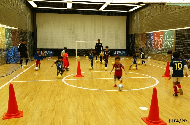 親子フットサルのコーナーでは、キッズから大人までたくさんの参加があり、とても白熱した雰囲気に。