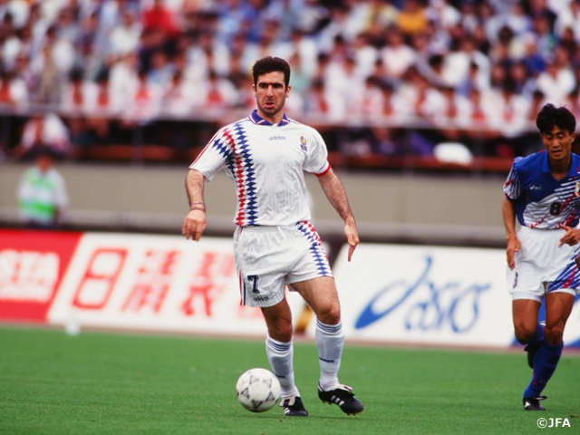まずは、同大会の歴史と変遷をたどる「キリンカップサッカーと日本代表」。日本サッカーが低迷期にあった1970年代、FIFAワールドカップでもオリンピックでも予選を突破できず、閉塞感は募るばかりでした。それを打破するため、JFAは78年に「ジャパンカップ」を創設。アジア各国の代表チームや世界の名だたるチームを招待し、同大会を開催してきました。38年の歴史の中で同大会に出場した世界的プレーヤーは枚挙に暇がなく、日本のファンは彼らの勇姿と高度なテクニックに魅了されてきました(写真は、94年大会に出場したエリック・カントナ選手/フランス)。また、日本人プロ第1号となった奥寺康彦選手や三浦和良選手など、海外のクラブチームに所属する選手の活躍にも沸きました。