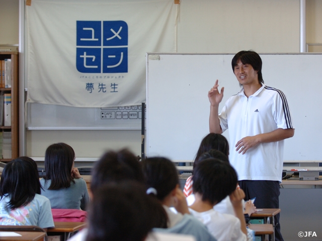 安永さんは、Jリーグやスペインリーグでプレーし、引退後に横浜F・マリノスの「ふれあいサッカープロジェクト」のコーチに就き、その後、JFAこころのプロジェクトと出合い、アシスタント、夢先生、そして、ユメセンインストラクターとして同プロジェクトに関わってきました。