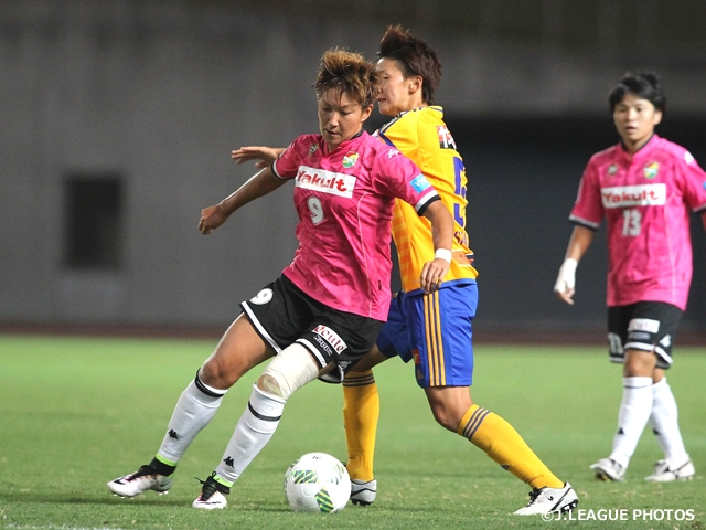 ともにリーグカップ初の決勝進出を目指すベガルタ仙台レディース(Bグループ1位)とジェフL(Aグループ2位)の対戦は、開始早々3分にスコアが動きます。右CKを蹴ったMF瀬戸口梢選手のボールに、FW菅澤優衣香選手が頭で合わせてジェフLが早くもリードを奪いました。ベガルタは特に後半に何度か攻め込みましたが、MF川村優理選手やFW井上綾香選手といった攻撃を支える選手たちがフィニッシュに絡めず、そのまま1-0でジェフLが初のリーグカップ制覇に王手をかけました。