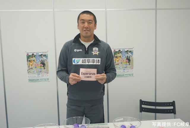 大会に先立ち予選リーグの組み合わせ抽選会が、9月28日(水)に岐阜市スポーツ交流センターで行われ、大会スペシャルサポーターであるFC岐阜・高木義成選手がドロワーを務めました。