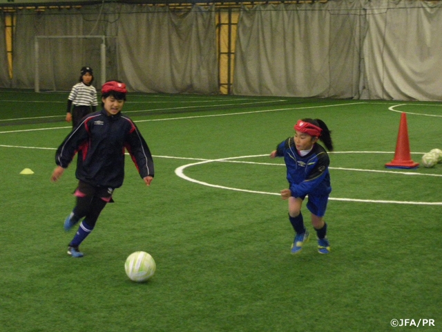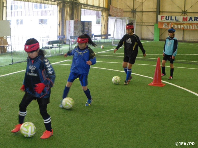 株式会社クーバー・コーチング・ジャパンが主催する「JFAなでしこひろば」が2月18日(土)、広島県広島市南区で開催されました。当日は、小学4年生から6年生の女の子7名が集まり、楽しくボールを追いかけました。
