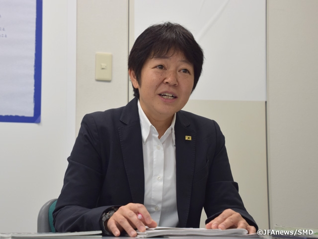 自身の体験から「『普及』は自分にとって思い入れのあるトピック」だと語る今井委員長。今年から始動した普及コーディネーターの活動や女性指導者の養成、代表チームが目指す方向性など、女子サッカーの今後の展望について話を聞きました。