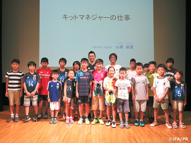 今回は「キットマネジャーの仕事」と題して、SAMURAI BLUE(日本代表)キットマネジャー アディダスジャパン株式会社 山根威信さんに、チームのためにどのようなこと仕事をしているかをはじめ、遠征時の荷物、試合前のロッカールームの準備の様子など普段見ることのできない日本代表チームのことをお話しいただきました。お話のあと、参加者からはキットマネジャーでなければ答えられない多くの質問があり、山根さんにそのひとつひとつに丁寧にお答えいただきました。