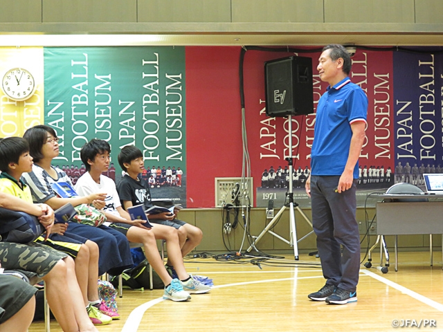 日本サッカーミュージアムは、こどもたちにサッカーへの興味、関心を高めてもらうことを趣旨として、夏休み自由研究イベントを開催しています。13日(日)はスペシャルイベントの最終日、「大切に思うこと~フェアプレーって何だろう~」と題して、JFAリスペクト・フェアプレー委員会 松崎康弘委員長によるトークイベントを開催しました。
