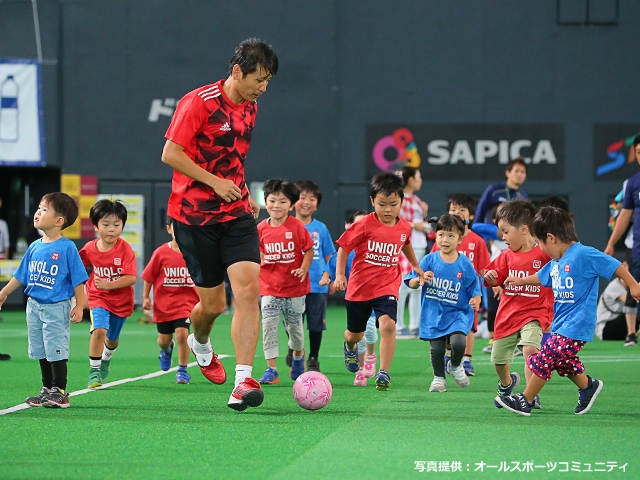 スペシャルゲストの中田浩二さんをはじめ、チャレンジ1年生の「コラショ」、北海道コンサドーレ札幌の「ドーレくん」のマスコットキャラクターたちも、ピッチでプレーする子どもたちに声援を送ったり、一緒に写真撮影をしたりとイベントを盛り上げました。ユニクロ1,000万着のHELPリサイクルコーナーでは、難民の子どもたちに送る子ども服回収のCSR活動も行われました。
