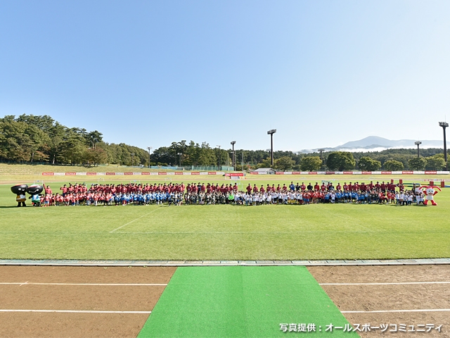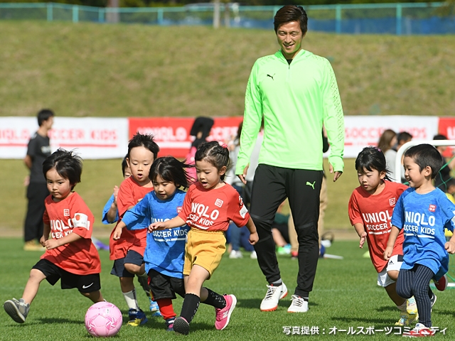 スペシャルゲストの福西崇史さんをはじめ、チャレンジ1年生の「コラショ」、岩手県PRキャラクターわんこ兄弟の「そばっち」、「おもっち」、岩手県公認キャラクターの「ケロ平」、J3リーググルージャ盛岡の選手も、ピッチでプレーする子どもたちに声援を送ったり、一緒に写真撮影をしたりとイベントを盛り上げ、参加者と一緒に岩手国体1周年を記念した楽しい時間を過ごしました。ユニクロ1,000万着のHELPリサイクルコーナーでは、難民の子どもたちに送る子ども服を集めるCSR活動も行われました。
