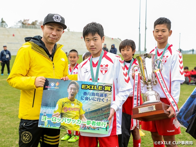 優勝した大阪セントラルFCへEXILE賞として、大会アンバサダーの香川真司選手に会いに行く「ヨーロッパサッカー夢者修行」も目録を贈呈されました。