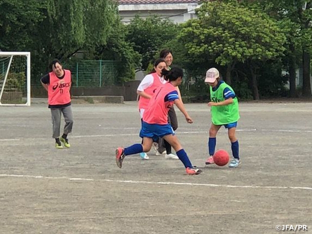 全国各地で開催されている「JFAなでしこひろば」を、5月28日(月)に「JFAハウス」にて初めて開催することとなりました。大人の女性を対象に、初めてボールを触る方や、普段忙しくてなかなか体を動かす機会がない方など、どなたでも気軽に楽しめる90分です。高校生、大学生、シニアの方も歓迎です。指導はナショナルトレセンコーチ・山郷のぞみさん(元なでしこジャパン)が担当します。
