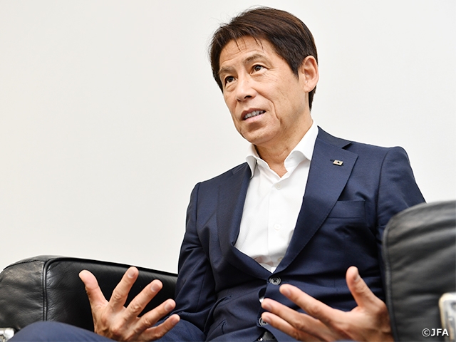 巻頭インタビューは、西野朗新監督。大会を2カ月後に控え、ヴァイッド・ハリルホジッチ監督に代わってSAMURAI BLUE(日本代表)の指揮を執る西野監督に大会に懸ける思いや試合に向けた準備、選手に対する期待などを語ってもらいました。