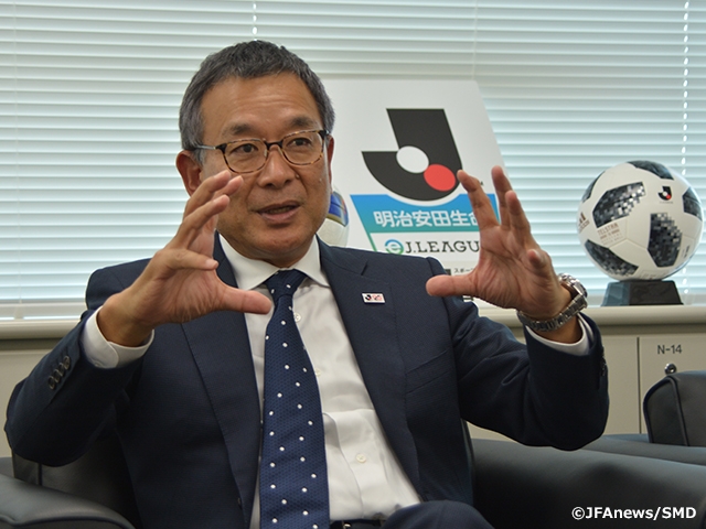 巻頭インタビューは、村井満Jリーグチェアマン。昨シーズンよりJリーグの全試合をインターネット配信でライブ中継するという世界でも先進的な取り組みを行う中、今シーズンもさまざまなリーグ改革に着手している村井チェアマンに、Jリーグの現在と今後の展望について話しを聞きました。
