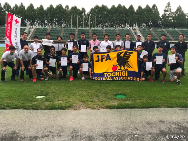 9月23日(日・祝)に栃木県宇都宮市の栃木県グリーンスタジアムにて、公益社団法人栃木県サッカー協会スポーツ医事委員会の協力のもと、「スポーツ救命ライセンス講習会」を開催しました。