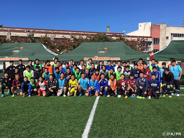 講義終了後には、青森山田高等学校のグラウンドをお借りし、サッカー実技を行いました。全国大会出場の常連校で実技を行うということで、通常のスタジアムとは少し違った緊張感の中、参加者は2時間あまりの実技を楽しむことができました。