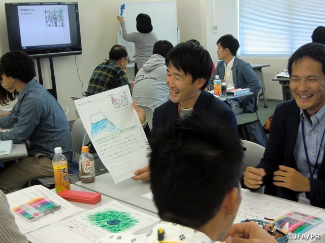 3日間連続の講座でたくさん考え、たくさん話し、最終日には「受講して良かった」という言葉を多くの受講生が口にしました。「仲間」という一体感が生まれ、全体を通してそれぞれが楽しく受講する様子が伺えました。それぞれが立てた数年後のビジョン、後の近況報告を楽しみに、最後は「今後もここで出会えた仲間やこれから出会う新たな仲間と共に、サッカー・フットサルをはじめとした『スポーツ』の可能性を広げ、共に頑張っていきましょう」と受講生たちは誓い合いました。