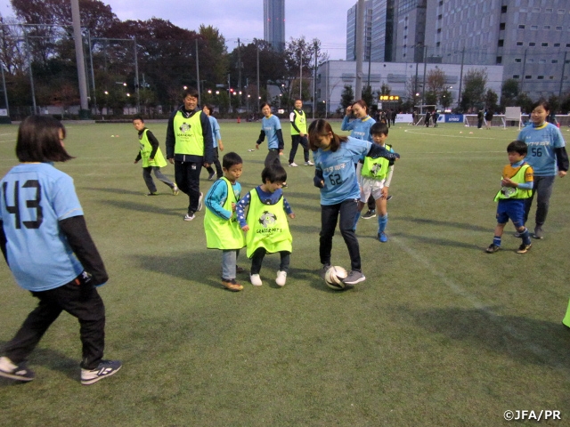 文京区が主催するユニバーサルスポーツDAYSの一環として12月2日(日)、文京区小石川運動場でウォーキングサッカー体験会を開催し、約100人が参加しました。当日は集まった人でその場でチームを作り、簡単な試合を行いました。