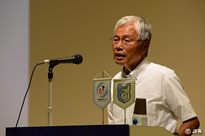 JFA指導者養成ダイレクターの眞藤邦彦さんによる基調講演では、現在のJFAにおける暴力根絶に向けた取り組みやその考え方について説明された後、子どもたちの親や指導者、社会に対する継続的な啓発活動やそこで学び続けることの必要性について言及され、最後は「スポーツや指導者の価値を高めるために、スポーツに携わる人間はどうあるべきかをしっかりと考え、様々な取り組みを行っていくことが重要」という言葉で締めくくられました。