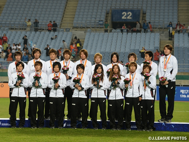 第17回アジア競技大会(2014/仁川) なでしこジャパンのユニフォームとペナント、銀メダルなどを展示