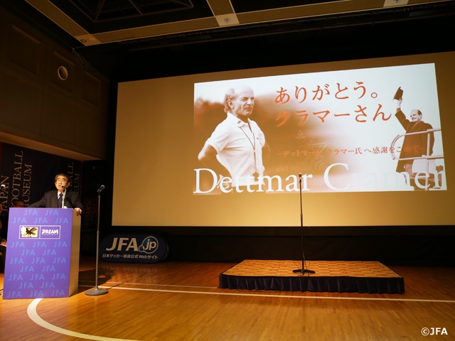 東京オリンピックを4年後に控えた1960年に日本代表のコーチとして招へいされ、その後、日本サッカーリーグ(JSL)の創設や指導者養成、ユース育成等、日本サッカーの近代化の礎を築いたデッドマール・クラマーさん(9月17日逝去)に対する「感謝の会」が19日、日本サッカー協会(JFA)の名誉総裁であられる高円宮妃殿下ご臨席のもとJFAハウスで開催されました。クラマーさんと親交のあった関係者ら約90人が参会し、故人を偲びました。