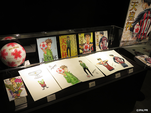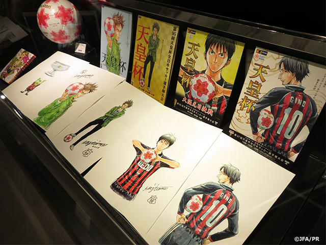 日本サッカーミュージアム 地下2階有料フロアにて、天皇杯全日本サッカー選手権大会メインビジュアルである、『GIANT KILLING』の作者ツジトモ先生による描き下ろしイラストの原画を展示中です。