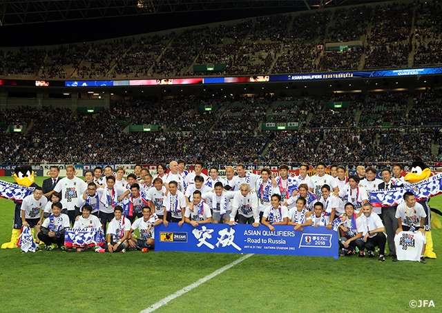 SAMURAI BLUE(日本代表)は、アジア最終予選のオーストラリア戦に浅野拓磨選手、井手口陽介選手の得点で2-0の勝利を収め、6大会連続6度目のワールドカップ出場を決めました。